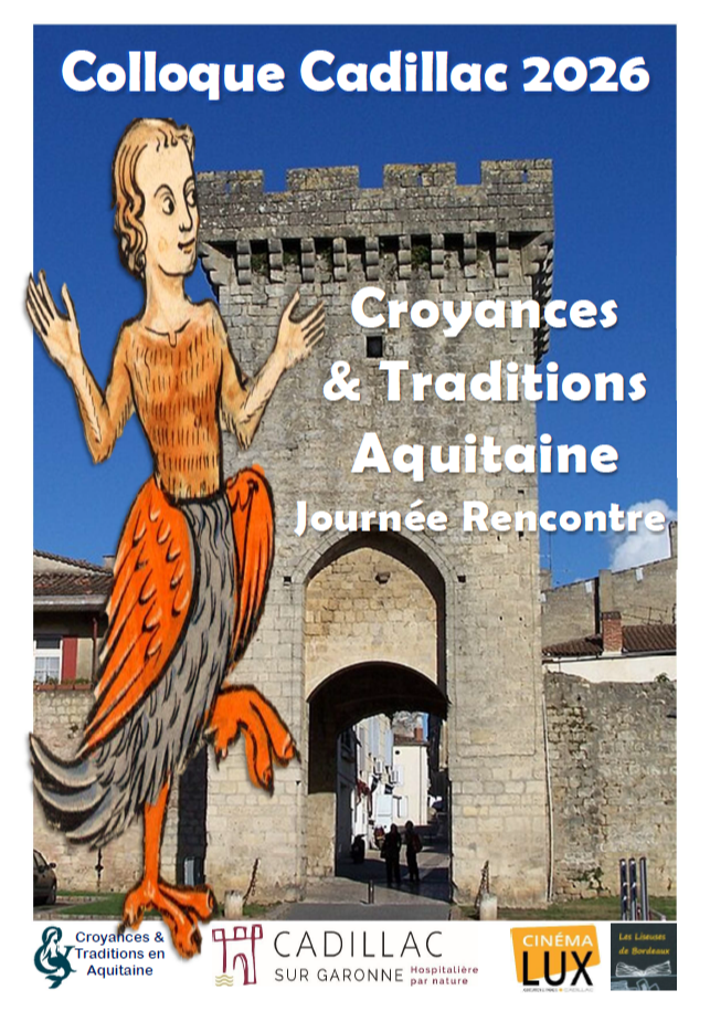 Colloque de Cadillac-sur-Garonne (25 avril 2026) : Croyances & traditions en Aquitaine. 8 h 30 : Accueil (mairie, salle du Conseil). 8 h 45 : Ouverture. 9 h : Conférence sur la tenture de Renaud et Armide au château. 9 h 30 : Les veyrines, trous de guérison des églises de la Garonne. 10 h : Pause café. 10 h 30 : Tradition des Bœufs Gras & élevage bazadais. 11 h : Coutumes de Benauge et de l'Entre-deux-Mers. 11 h 30 : Apéritif municipal. 12 h : Déjeuner libre. 14 h : Collectage mémoriel (mairie). 15 h : Visite guidée (1 h 30). 16 h 30 : Goûter libre. 17 h : Contes de Gascogne (bibliothèque, 1 h). 18 h 30 : Film L’engloutie (Ciné Lux, 7,40€). 21 h : Clôture au cinéma.